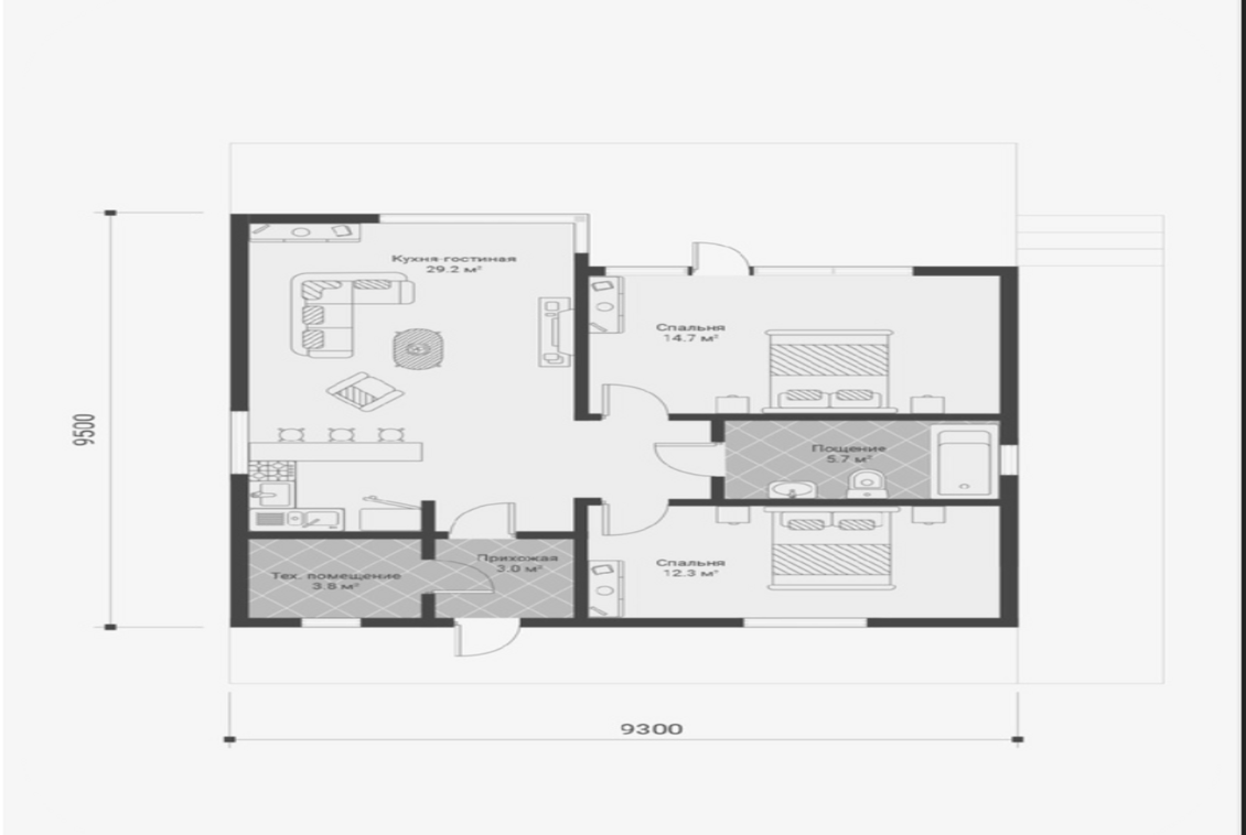 Общая площадь: 68.7 м2