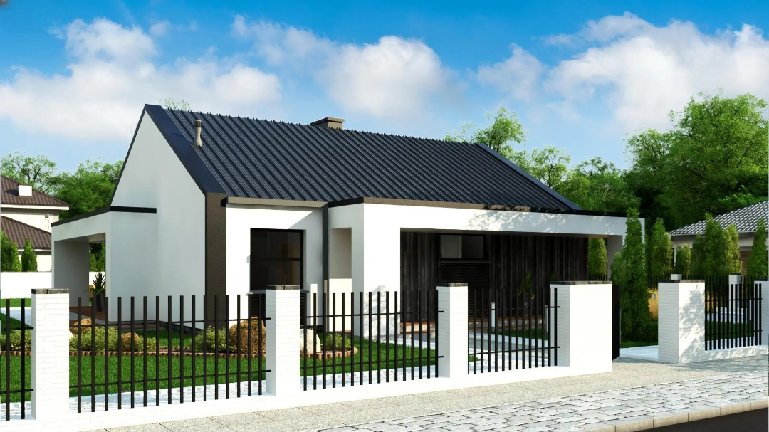 Современный одноэтажный дом с 3 спальнями, идеально подходящий для семьи из 4 человек.